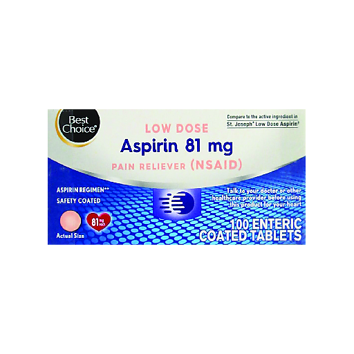 Best Choice Aspirin Pain Relief Safe Coated Tablets 81mg 100 Ct